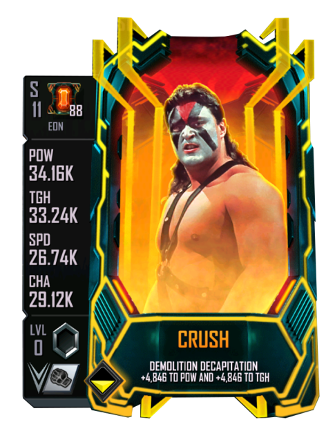 Crush first debuted in the WWE SuperCard Roster during the Season 11 of the game.
